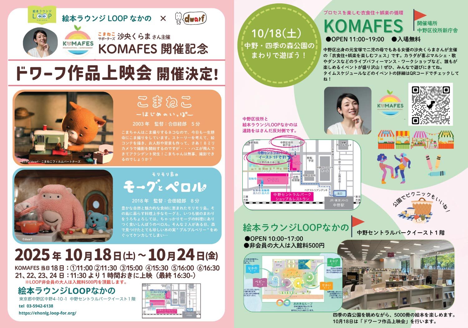 元宝塚女優で中野区観光大使、そして、こまねこサポーターズでもある沙央くらまさんが主催する『KOMAFES』開催を記念して、ドワーフと絵本ラウンジなかのLOOPさんとのコラボレーションが再び決定しました!